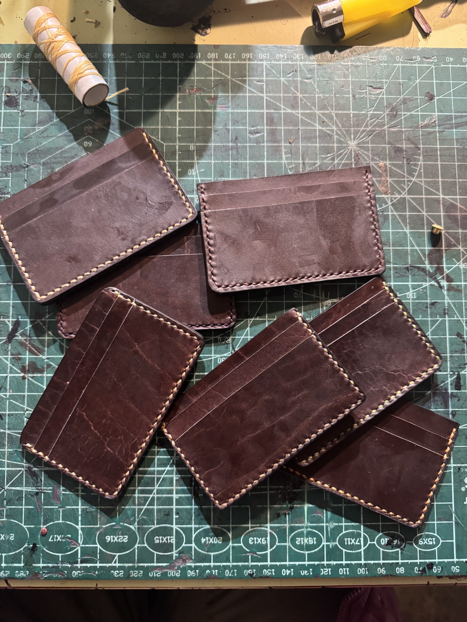 Tarjetero de cuero de ternera hecho a mano, diseñado para ocupar el mínimo espacio sin renunciar a la durabilidad. Su perfil fino permite llevarlo cómodamente en el bolsillo, evitando el volumen innecesario de una cartera tradicional